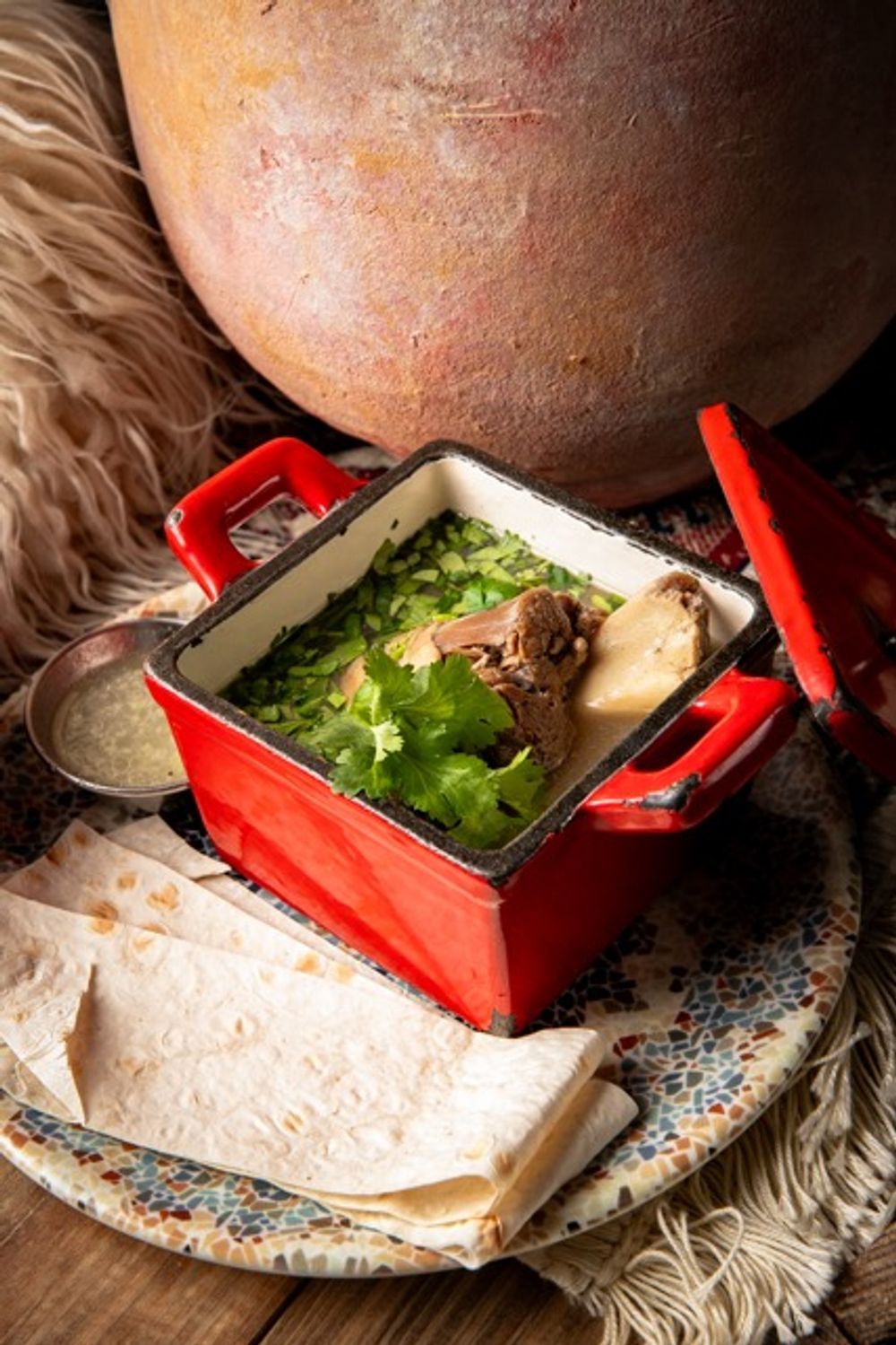 Самый наваристый бульон с ароматом горных трав, зелени и пряностей и баранина , которая специально варилась шесть часов