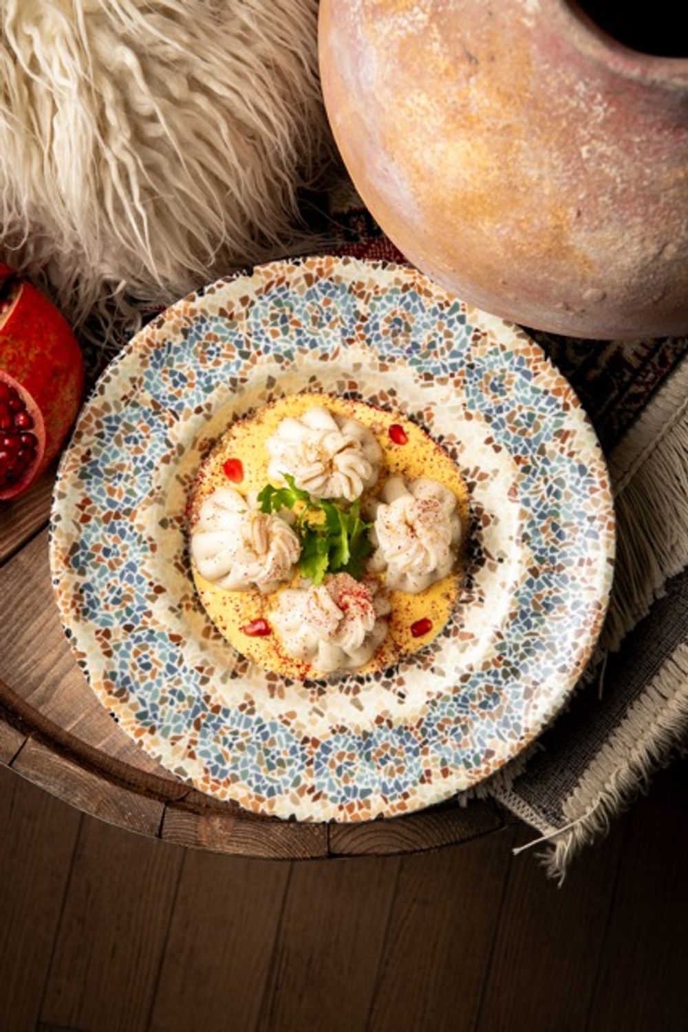 целых 4 мини хинкали с нэжной курочкой барбекю и сырным соусом!
